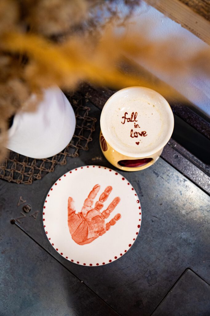 Fußabdrücke auf Keramik sind eine wundervolle und bleibende Erinnerung. Besonders beliebt bei frischgebackenen Eltern sind Teller, Tassen, Schüsseln oder Vasen – aber auch Christbaumkugeln oder Sparschweine lassen sich mit den kleinen Füßchen einzigartig gestalten.